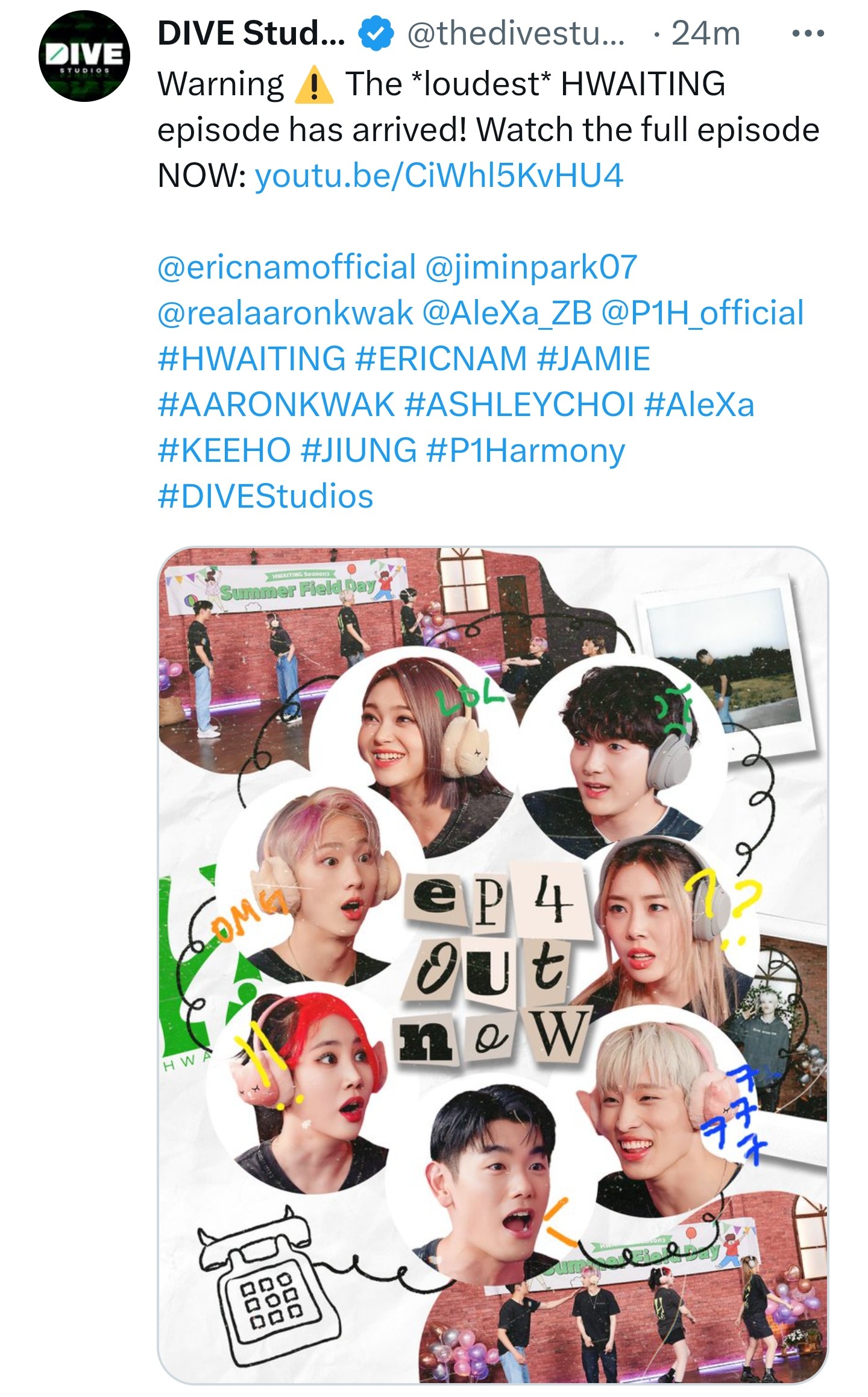 #HWAITING #ERICNAM #JAMIE #AARONKWAK #ASHLEYCHOI #AleXa #KEEHO #JIUNG #P1Harmony #DIVEStudios