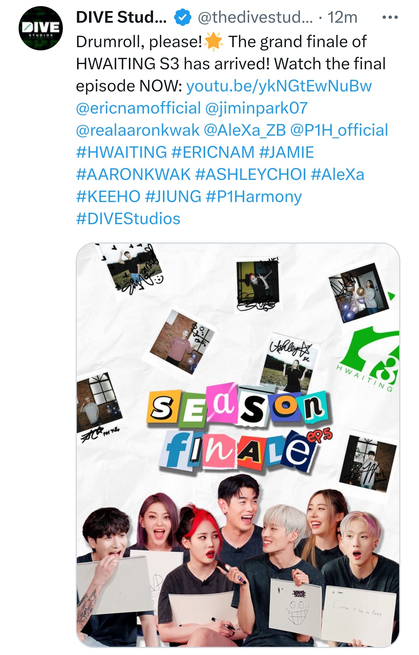 @ericnamofficial @jiminpark07 @realaaronkwak @AleXa_ZB @P1H_official #HWAITING #ERICNAM #JAMIE #AARONKWAK #ASHLEYCHOI #AleXa #KEEHO #JIUNG #P1Harmony #DIVEStudios
