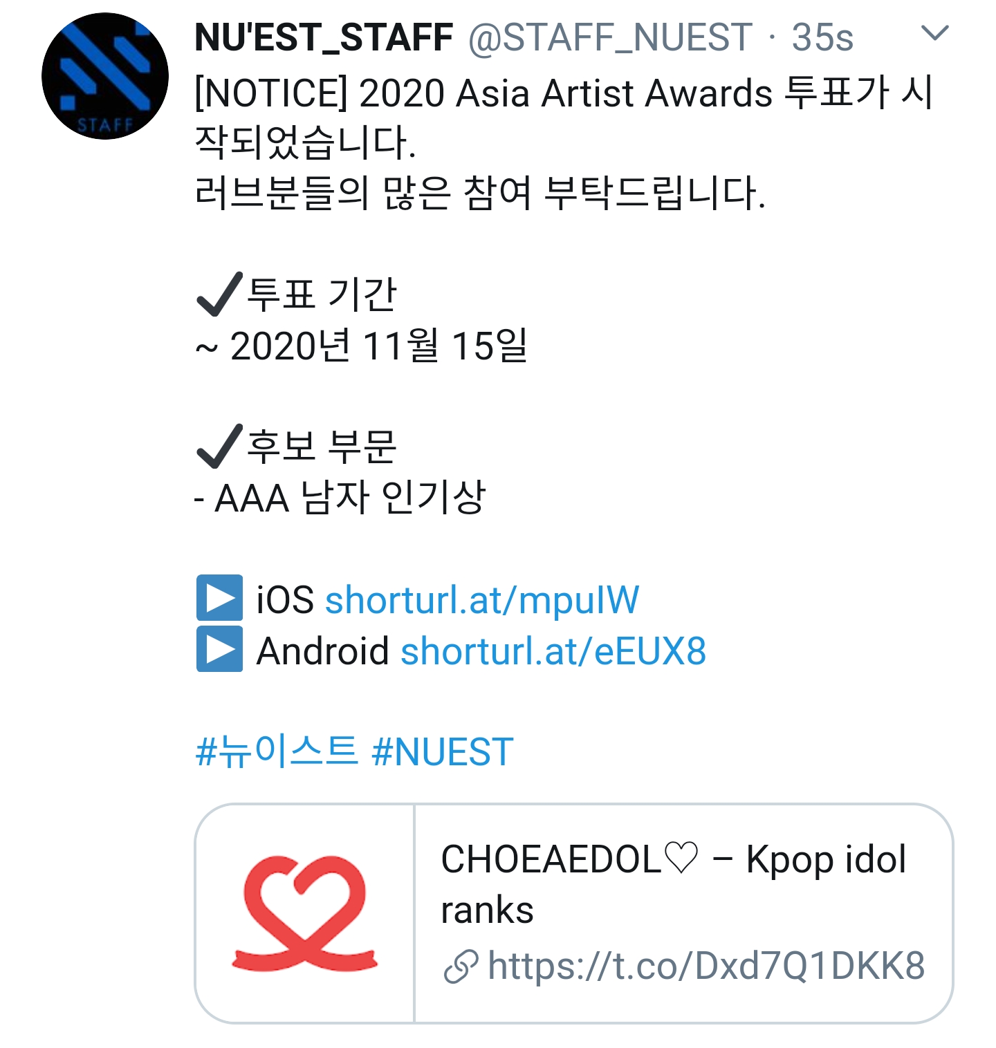 [NOTICE] 2020 Asia Artist Awards 투표가 시작되었습니다.