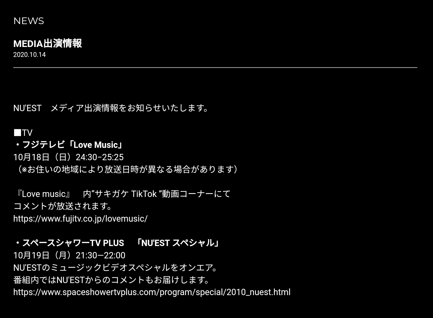 | 2020.10.14 📺 NU'EST SPECIAL (0) | 2020.10.14 |