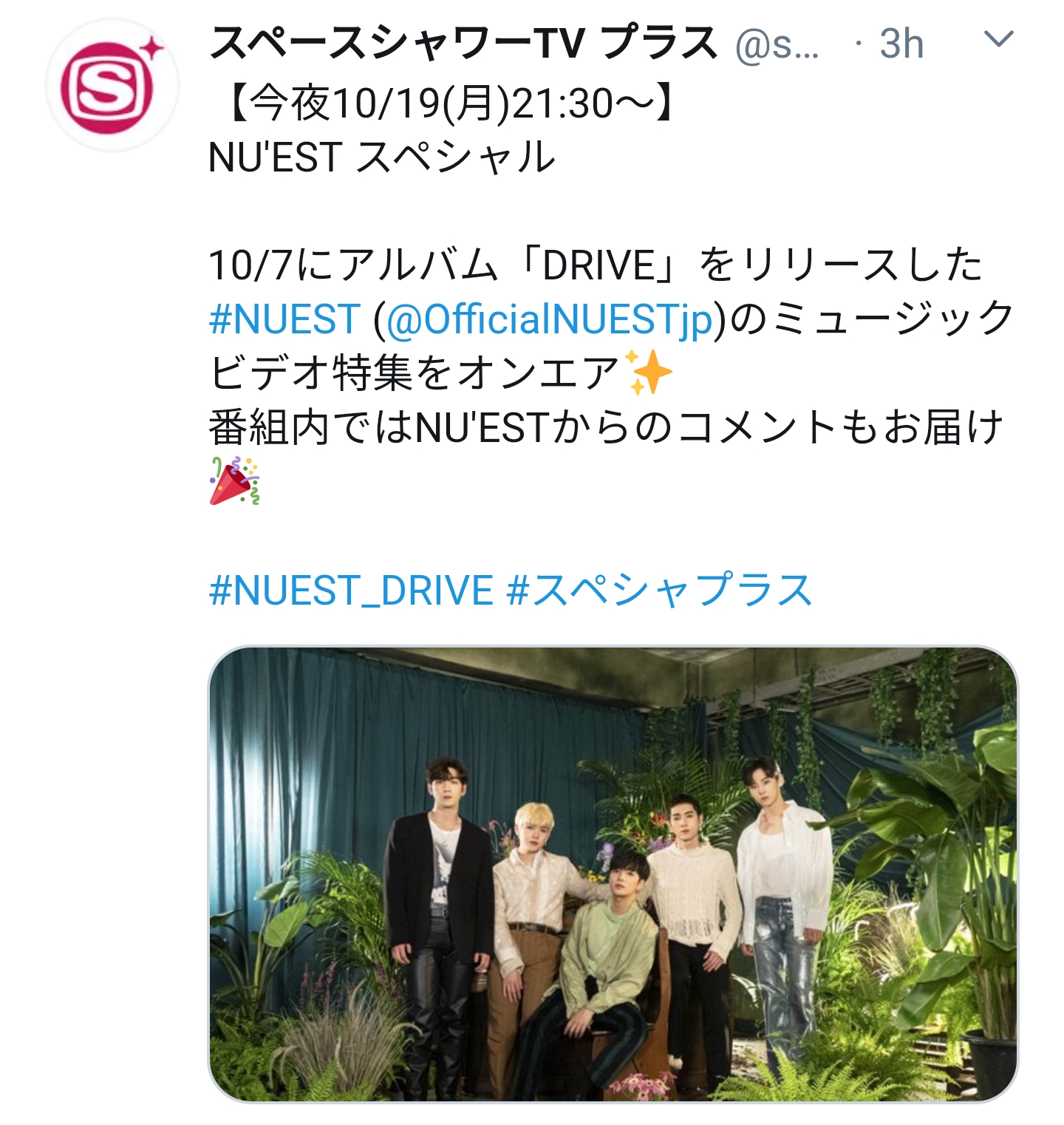 10/7にアルバム「DRIVE」をリリースした #NUEST (@OfficialNUESTjp)のミュージックビデオ特集をオンエア✨