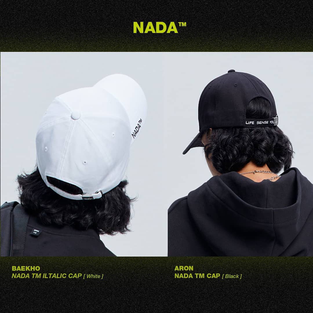 좋아요 1,368개, 댓글 2개 - Instagram의 NADA(@nada.wear)님: "@nuest_official 멤버 아론님과 백호님께서 각각 나다의 NADA TM CAP [Black], NADA TM ITALIC CAP [White] 착용해주셨습니다. 제품은…"