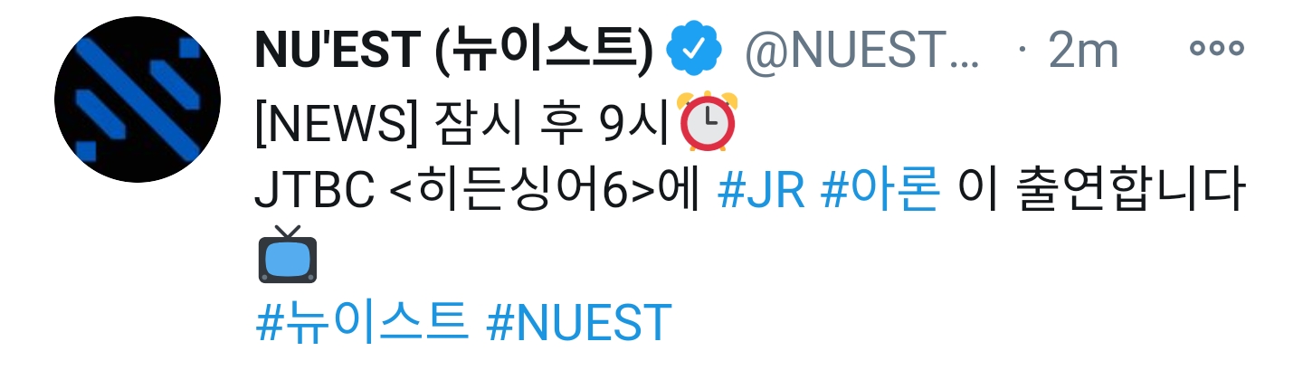 JTBC <히든싱어6>에 #JR #아론 이 출연합니다📺