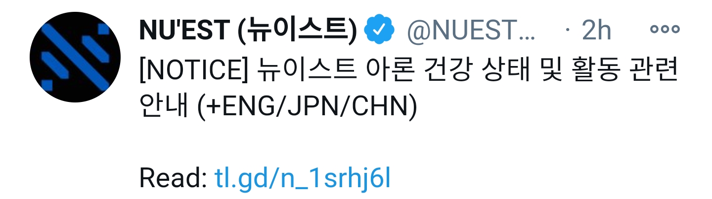 [お知らせ] NU’EST ARON 健康状態および活動に関するお知らせ