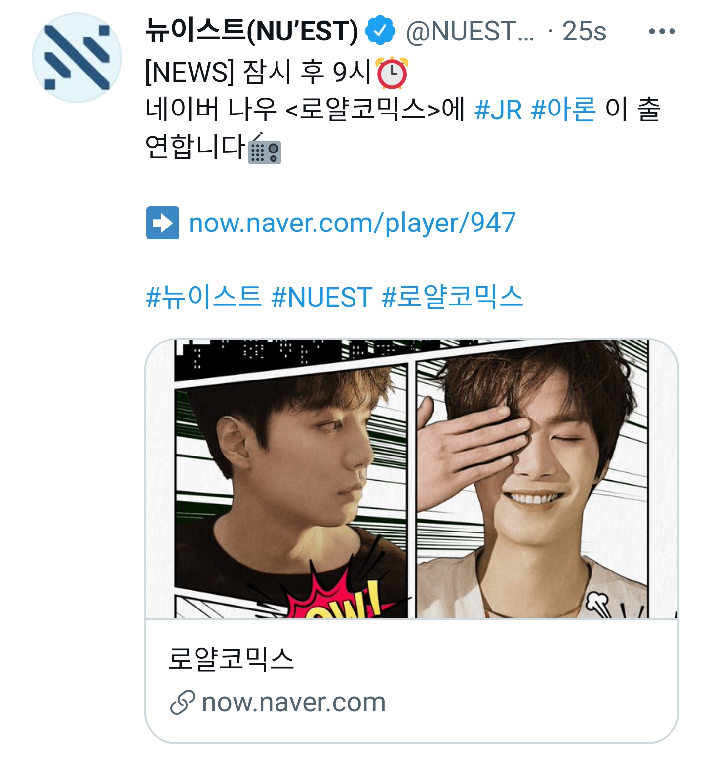 네이버 나우 <로얄코믹스>에 #JR #아론 이 출연합니다📻