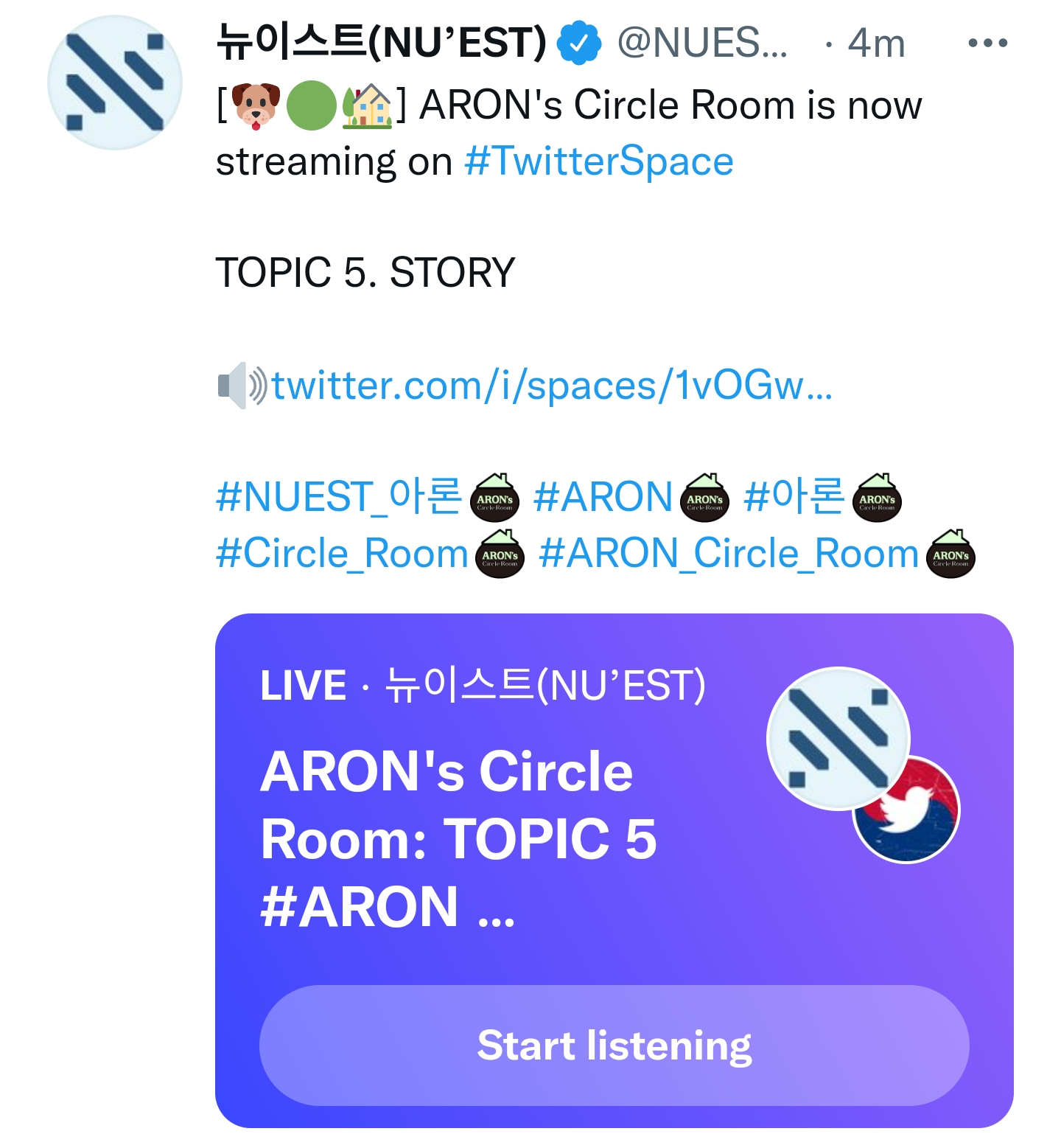 [๐ถ๐ข๐ก] ARON's Circle Room is now streaming on #TwitterSpace