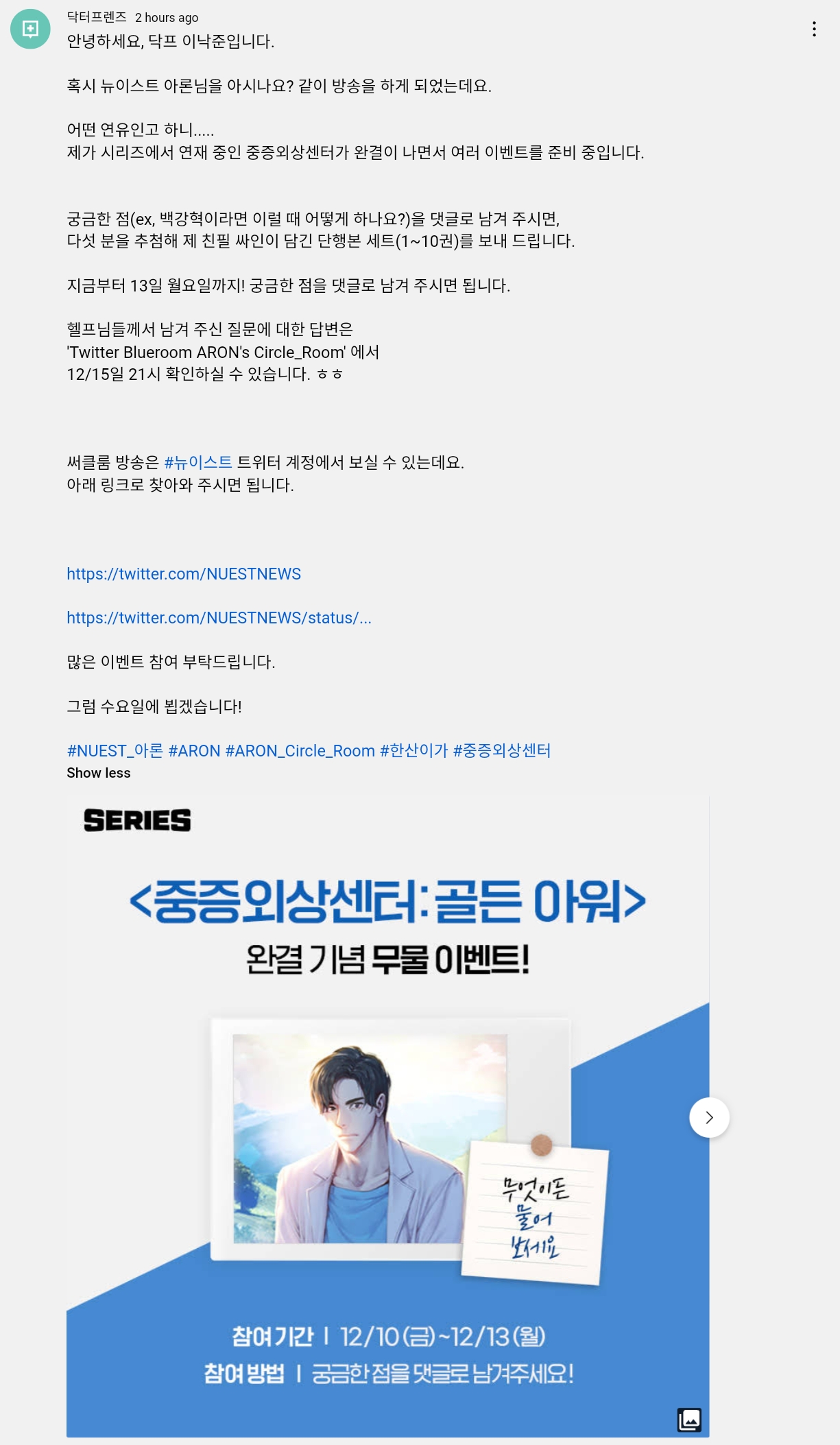 #NUEST_아론 #ARON #ARON_Circle_Room #한산이가 #중증외상센터
