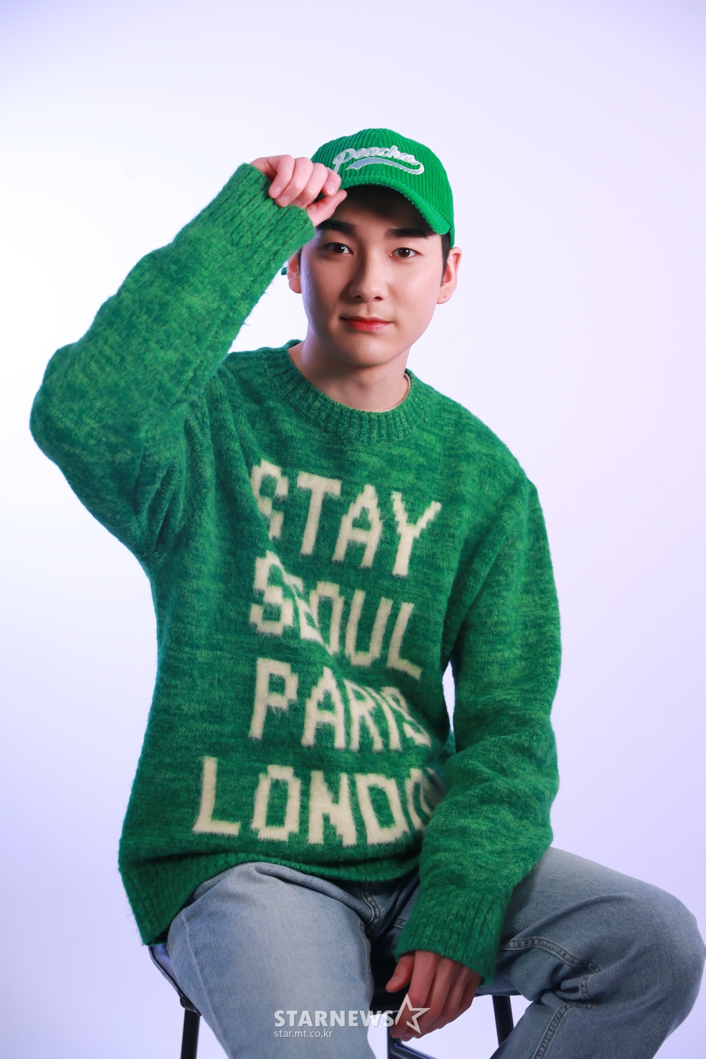 2021 아시아 아티스트 어워즈(AAA)에서 베스트 어치브먼트, 포텐셜(민현)을 수상하며 2관왕을 달성한 그룹 뉴이스트 아론이 본지와의 인터뷰를 위해 포즈를 취하고 있다.