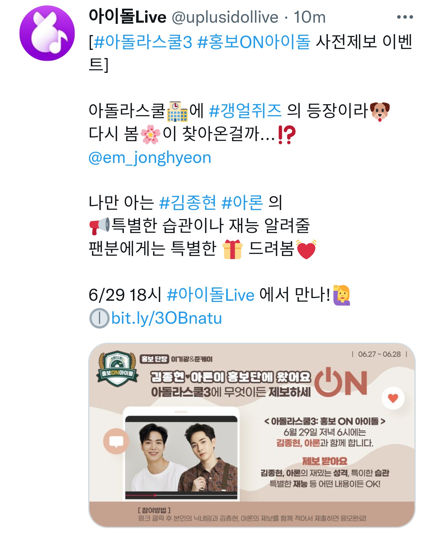 [#아돌라스쿨3 #홍보ON아이돌 사전제보 이벤트]
