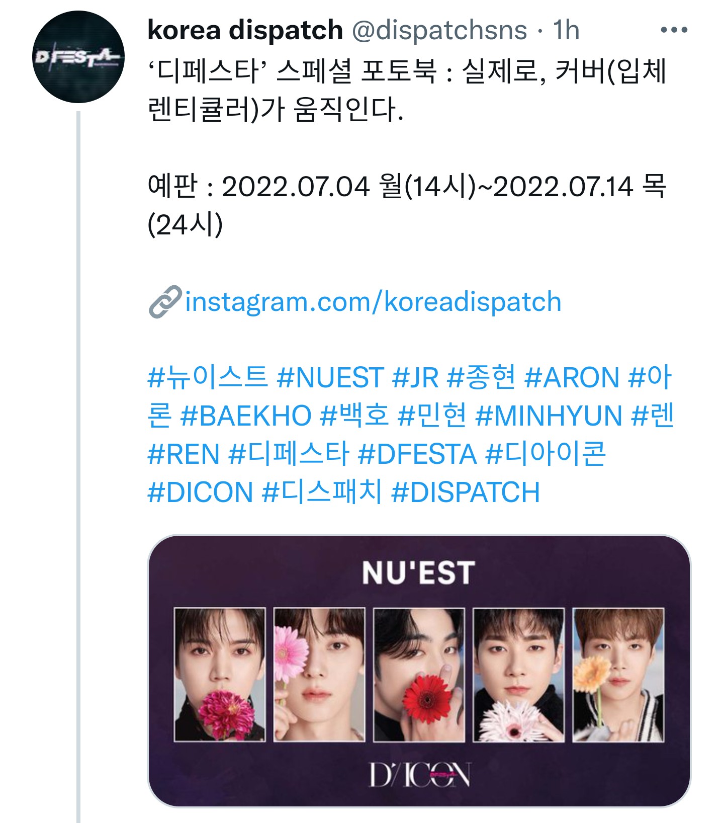 #뉴이스트 #NUEST #JR #종현 #ARON #아론 #BAEKHO #백호 #민현 #MINHYUN #렌 #REN #디페스타 #DFESTA #디아이콘 #DICON #디스패치 #DISPATCH