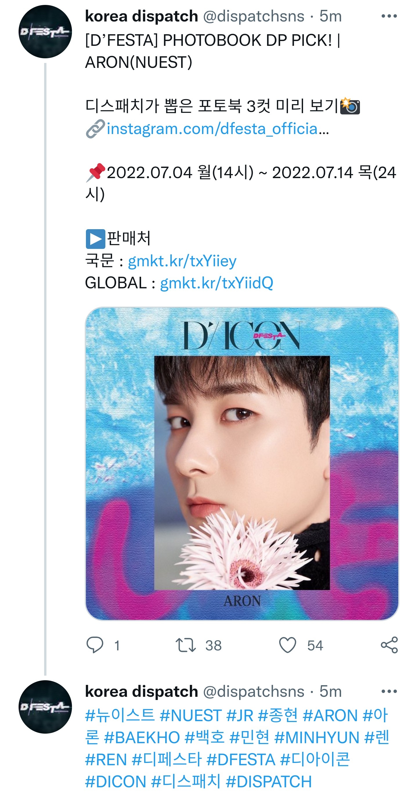 #뉴이스트 #NUEST #JR #종현 #ARON #아론 #BAEKHO #백호 #민현 #MINHYUN #렌 #REN #디페스타 #DFESTA #디아이콘 #DICON #디스패치 #DISPATCH