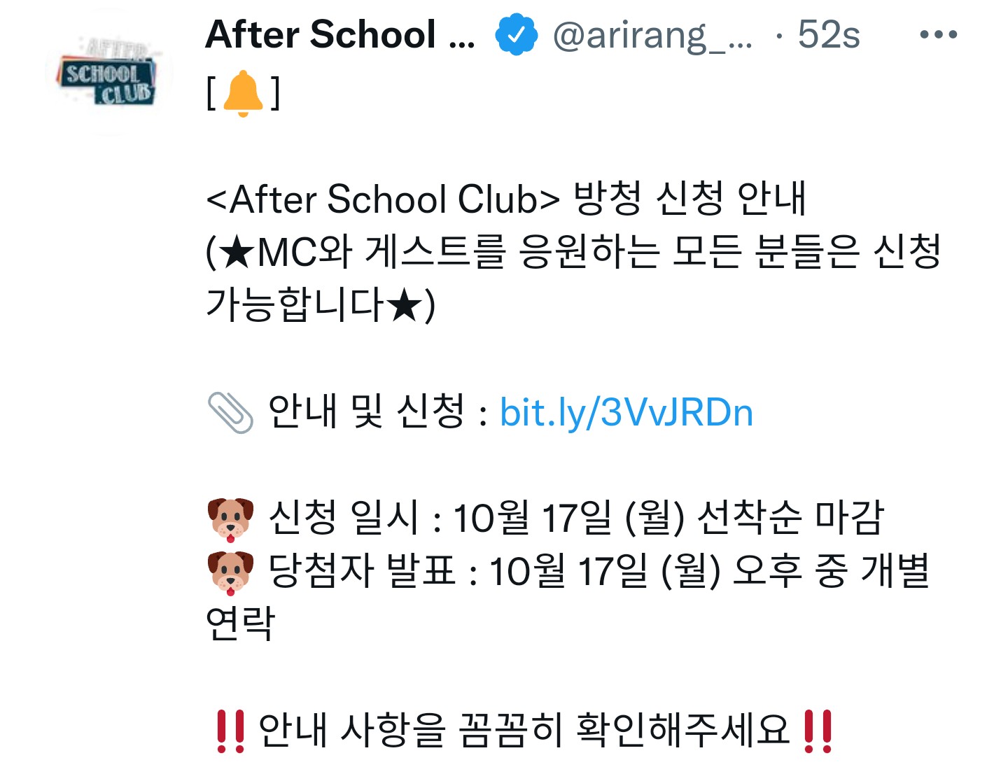 <After School Club> ๋ฐฉ์ฒญ ์ ์ฒญ ์๋ด