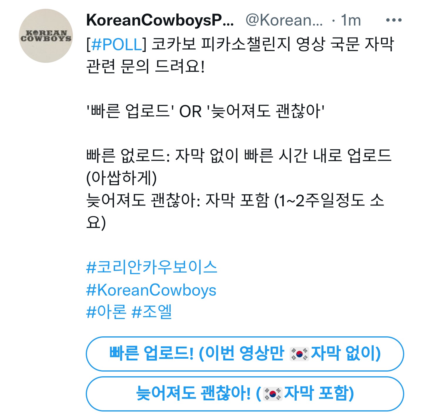 [#POLL] 코카보 피카소챌린지 영상 국문 자막 관련 문의 드려요!